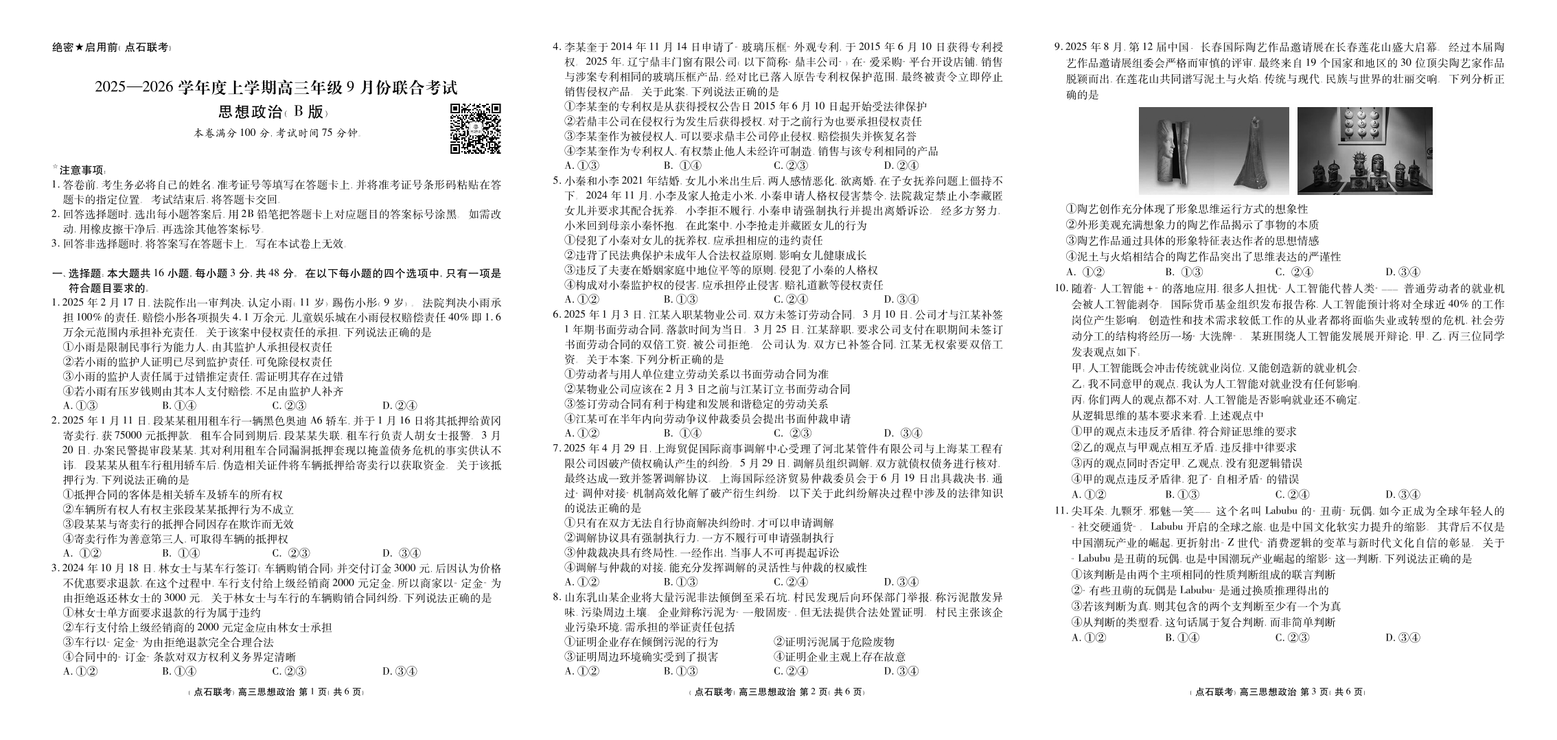 高三政治B版--辽宁省点石联考2026届高三9月份联合考试