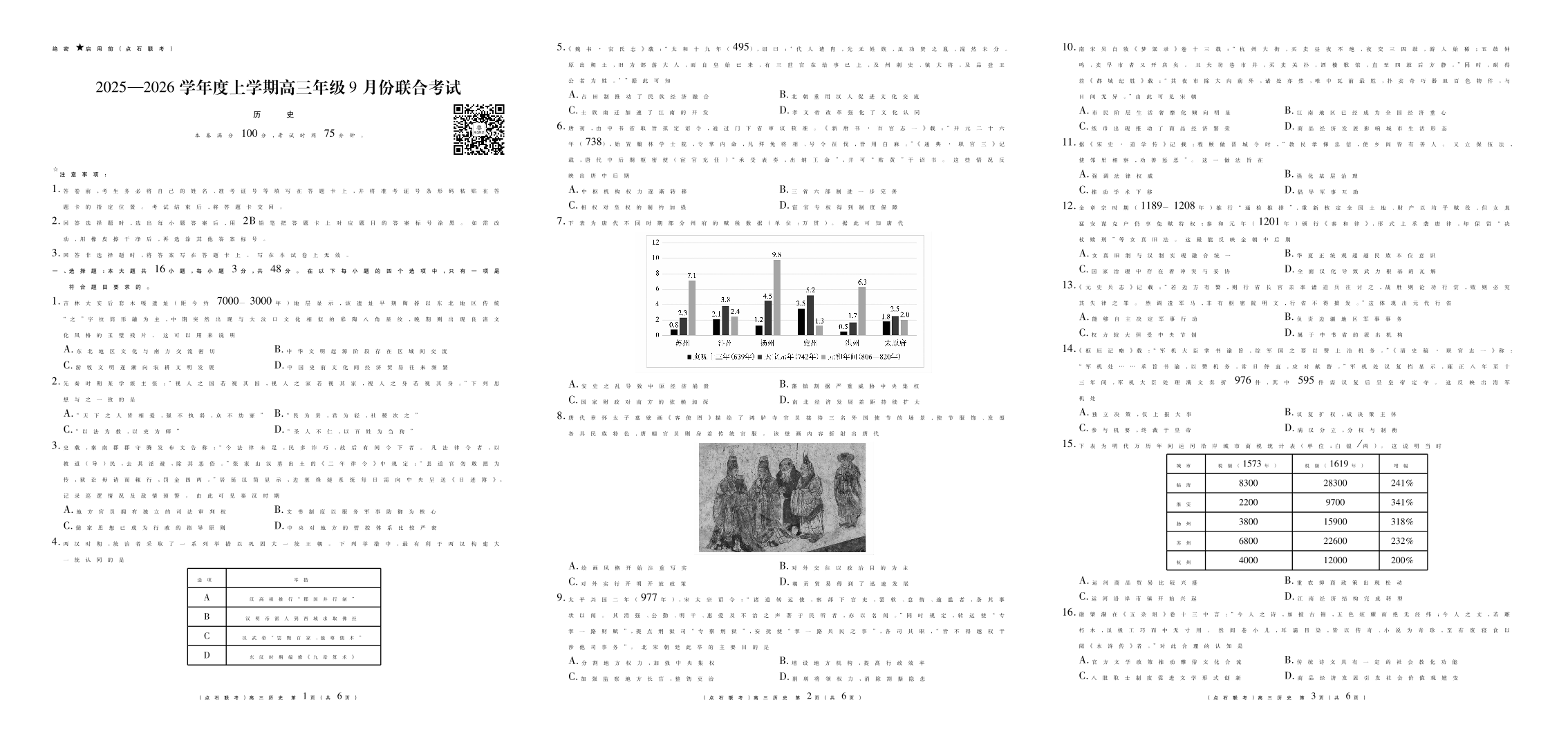 高三历史--辽宁省点石联考2026届高三9月份联合考试