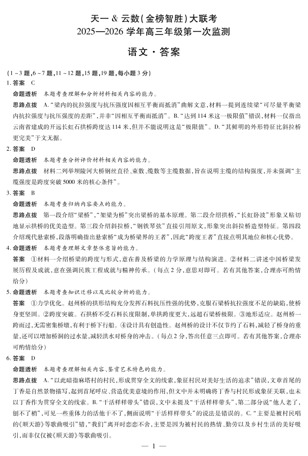 高三语文答案--四川省天一云数(金榜智胜)大联考2026届高三年级第一次监测