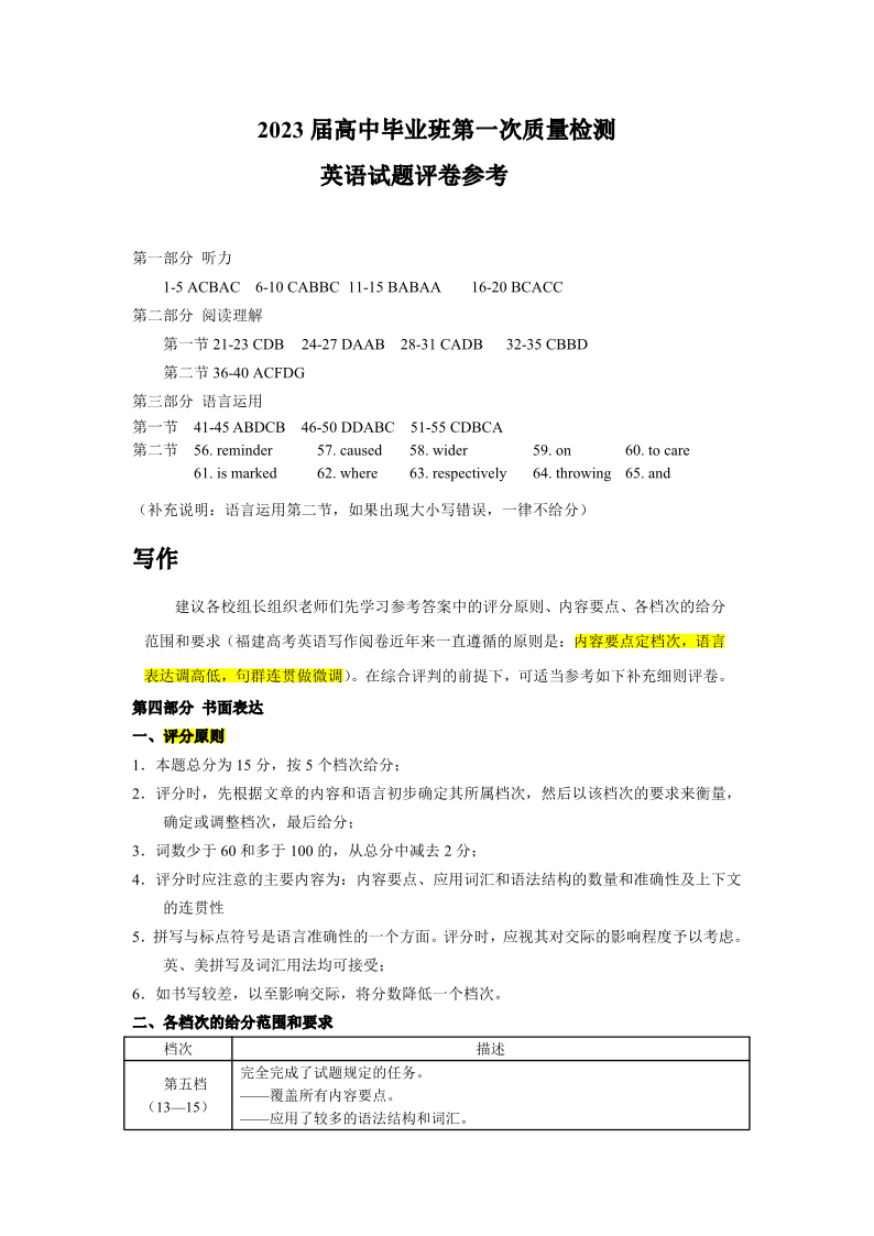 高三英语答案--福建省七地市2023高中毕业班第一次质量检测