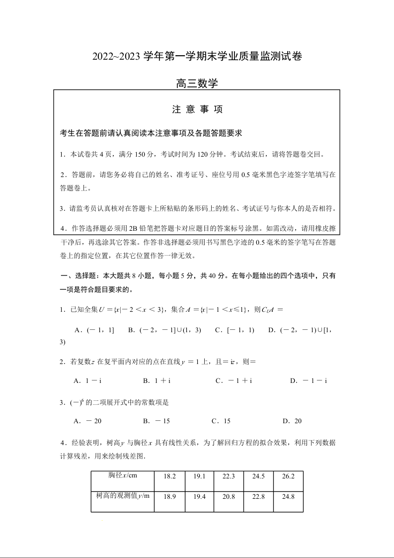 高三数学--江苏省南通市海安市2023高三上学期1月期末