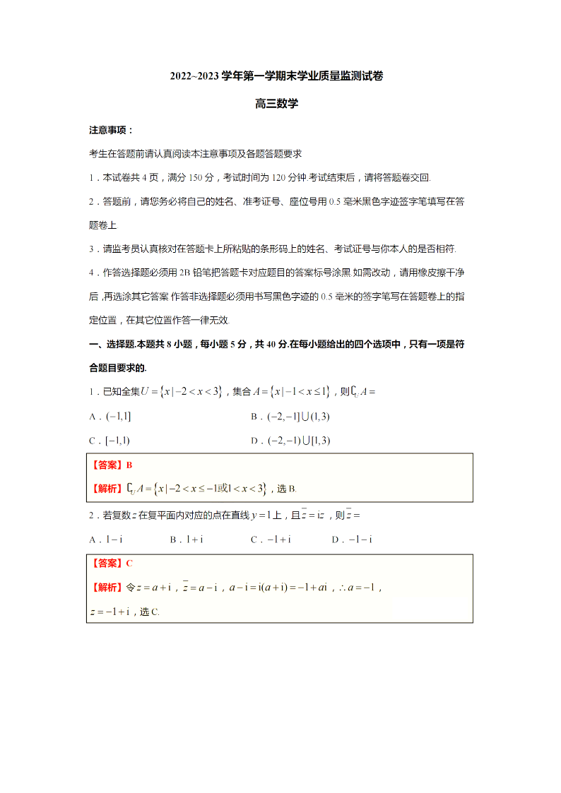 高三数学答案--江苏省南通市海安市2023高三上学期1月期末