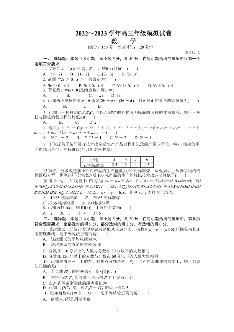 高三数学+答案--江苏省常州市2023高三上学期期末考试(延期)