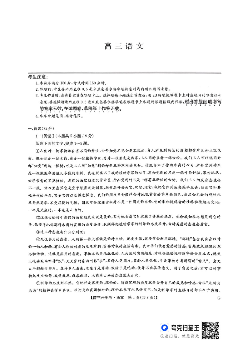 高三语文--九师联盟2026届高三上学期9月开学联考(巩固卷)