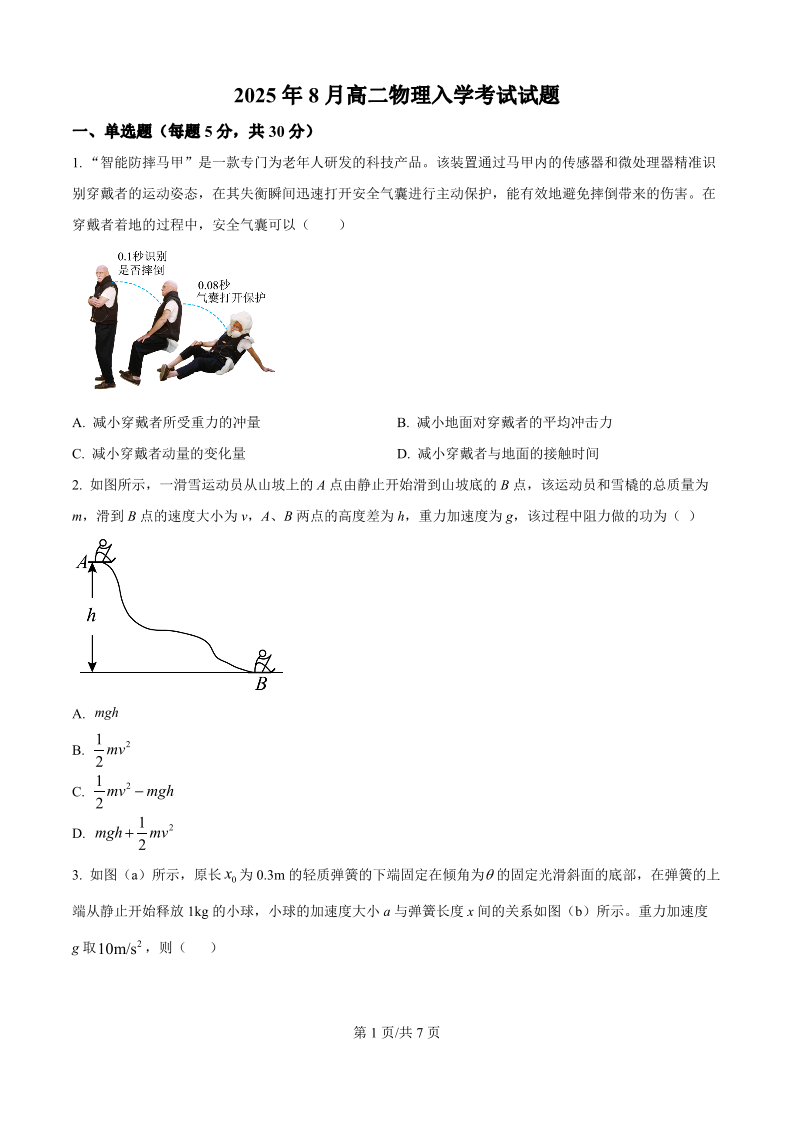 高二物理(原卷版)--湖南省岳阳市岳阳县第一中学2025-2026学年高二上学期开学考试