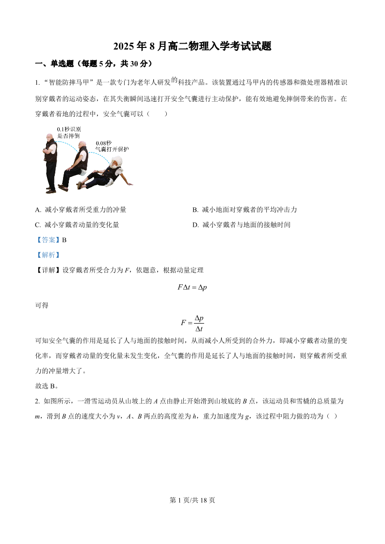 高二物理(精品解析版)--湖南省岳阳市岳阳县第一中学2025-2026学年高二上学期开学考试
