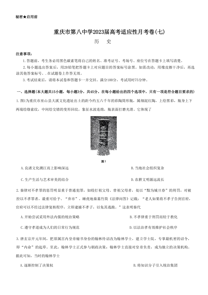高三历史--重庆市第八中学高2023届高考适应性月考卷(七)