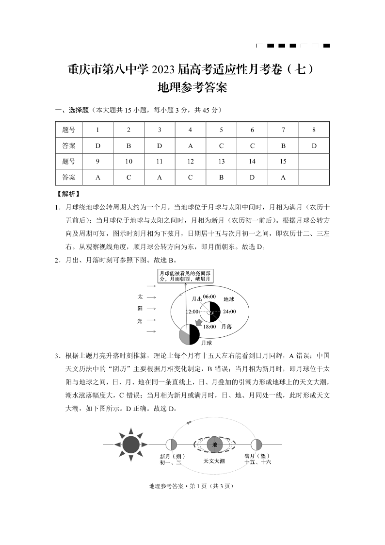 高三地理答案--重庆市第八中学高2023届高考适应性月考卷(七)