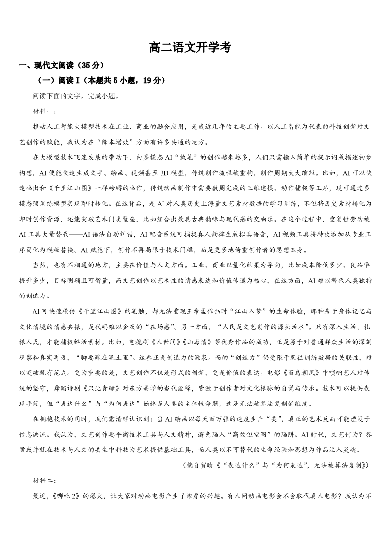 高二语文+答案--吉林省通化市梅河口市第五中学2025-2026学年高二上学期开学考试