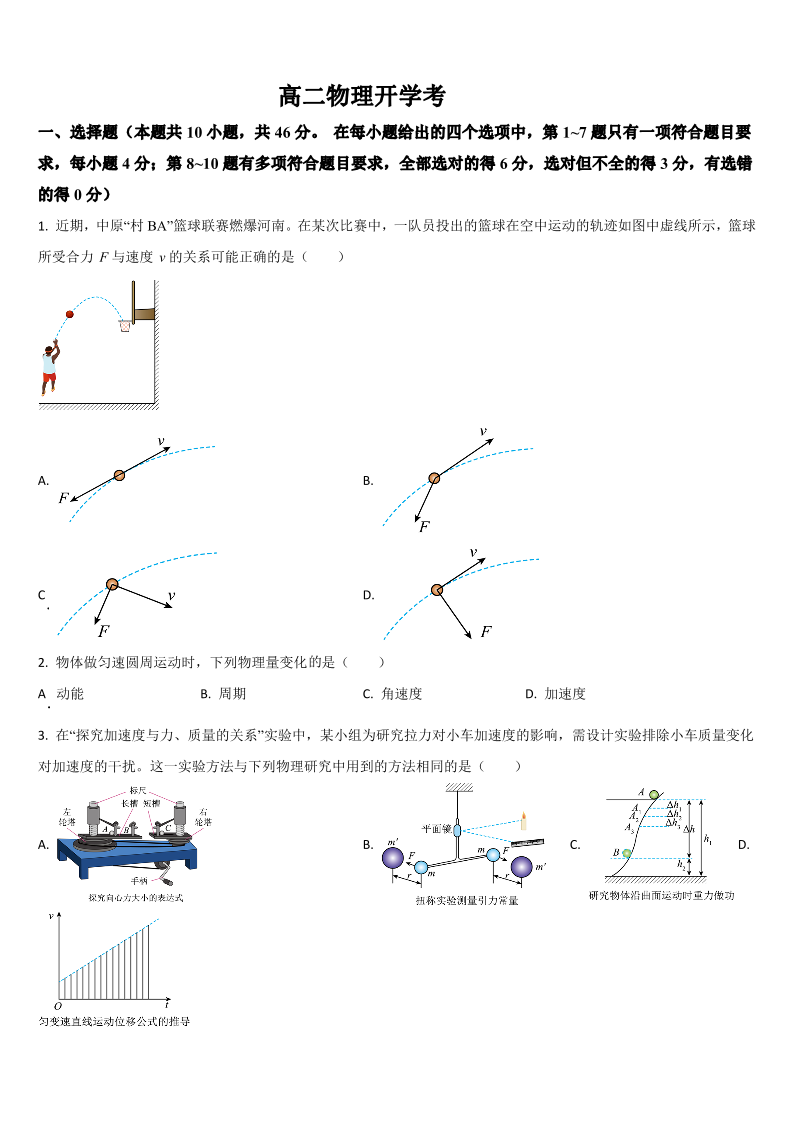 高二物理+答案--吉林省通化市梅河口市第五中学2025-2026学年高二上学期开学考试