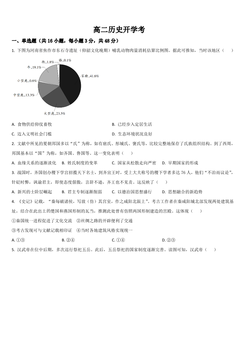 高二历史+答案--吉林省通化市梅河口市第五中学2025-2026学年高二上学期开学考试