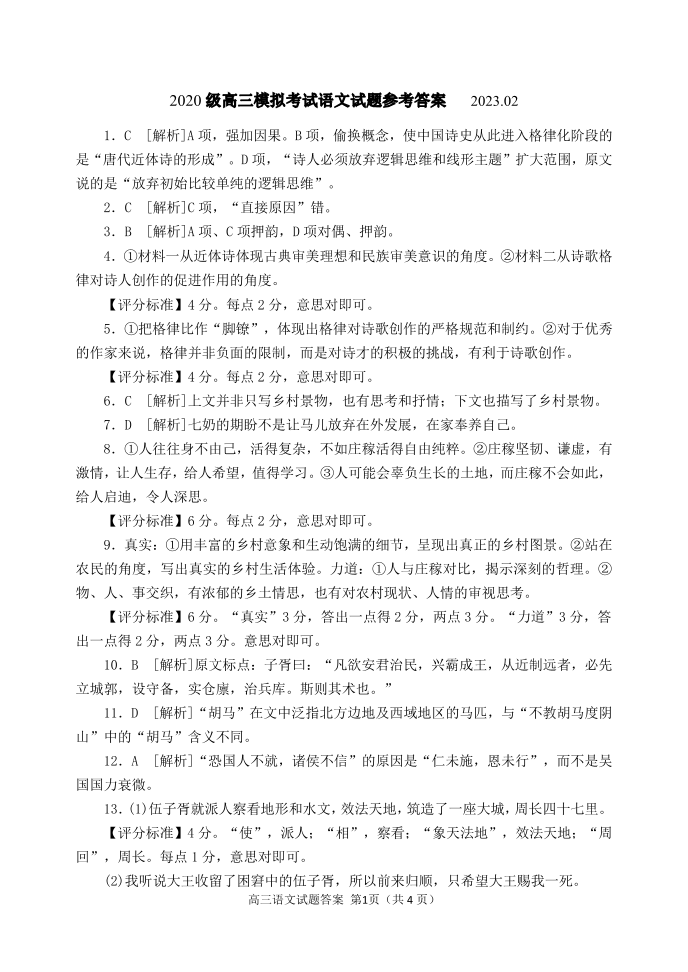 高三语文答案--山东省日照市2023届高三上学期一模考试