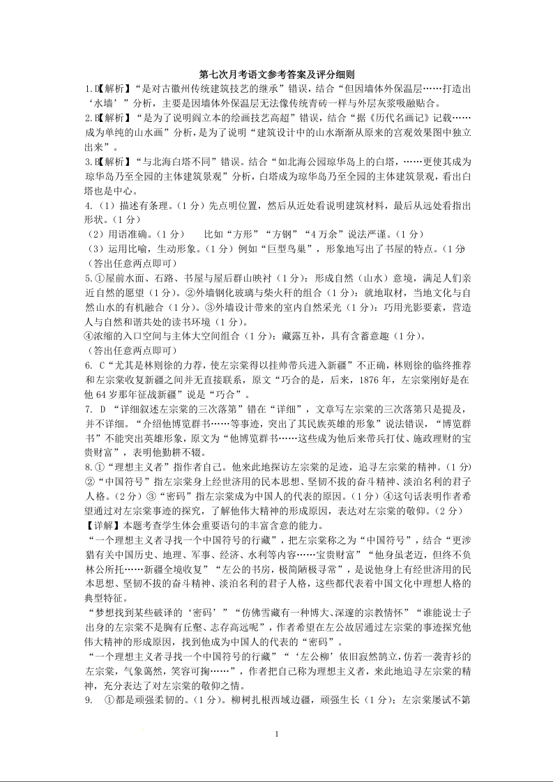 高三语文答案--海南省海南中学2023届高三第七次月考