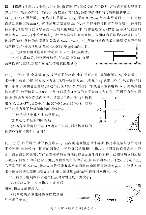 高三物理答案--湖南省郴州市2023届高三第三次质量检测