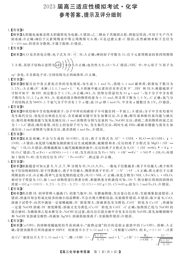 高三化学答案--湖南省郴州市2023届高三适应性模拟考试(郴州三模)