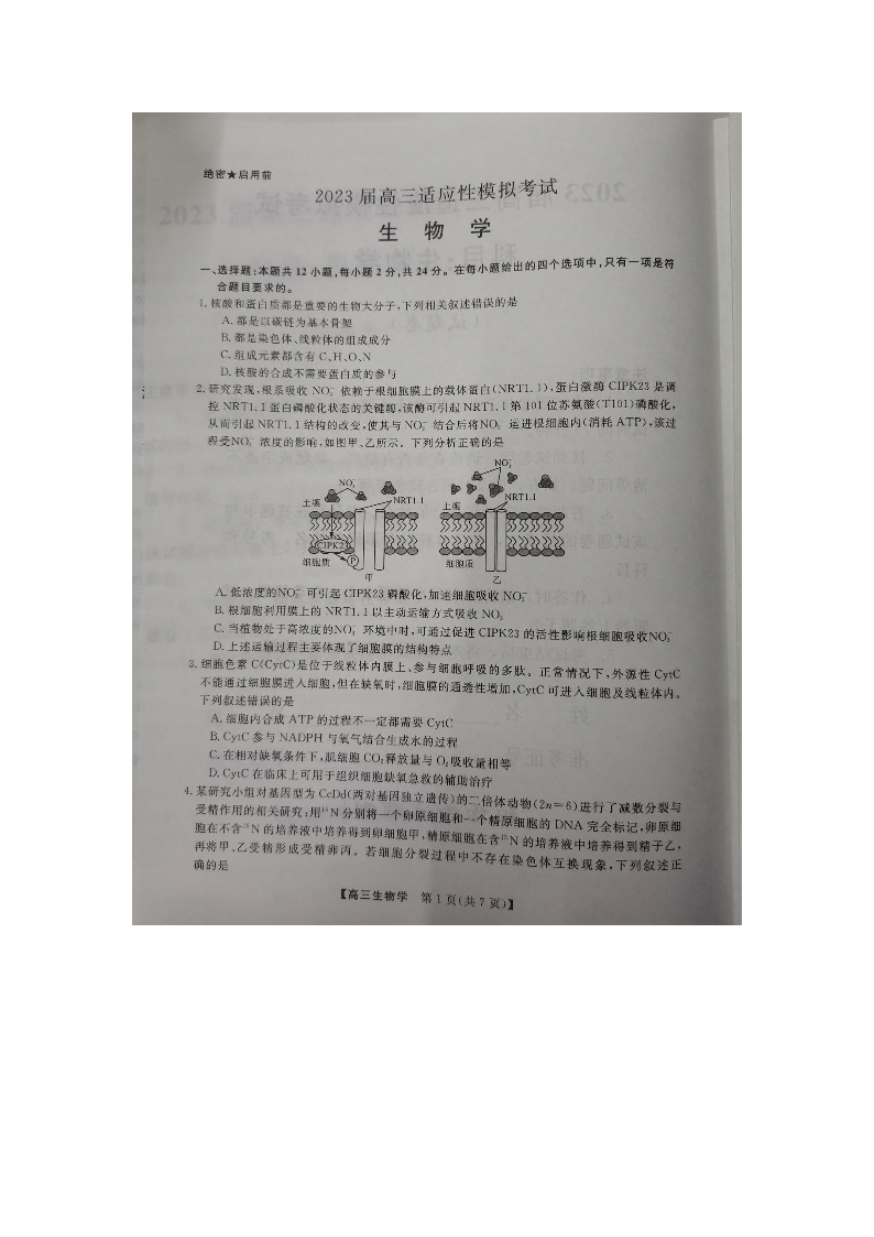 高三生物--湖南省郴州市2023届高三适应性模拟考试(郴州三模)