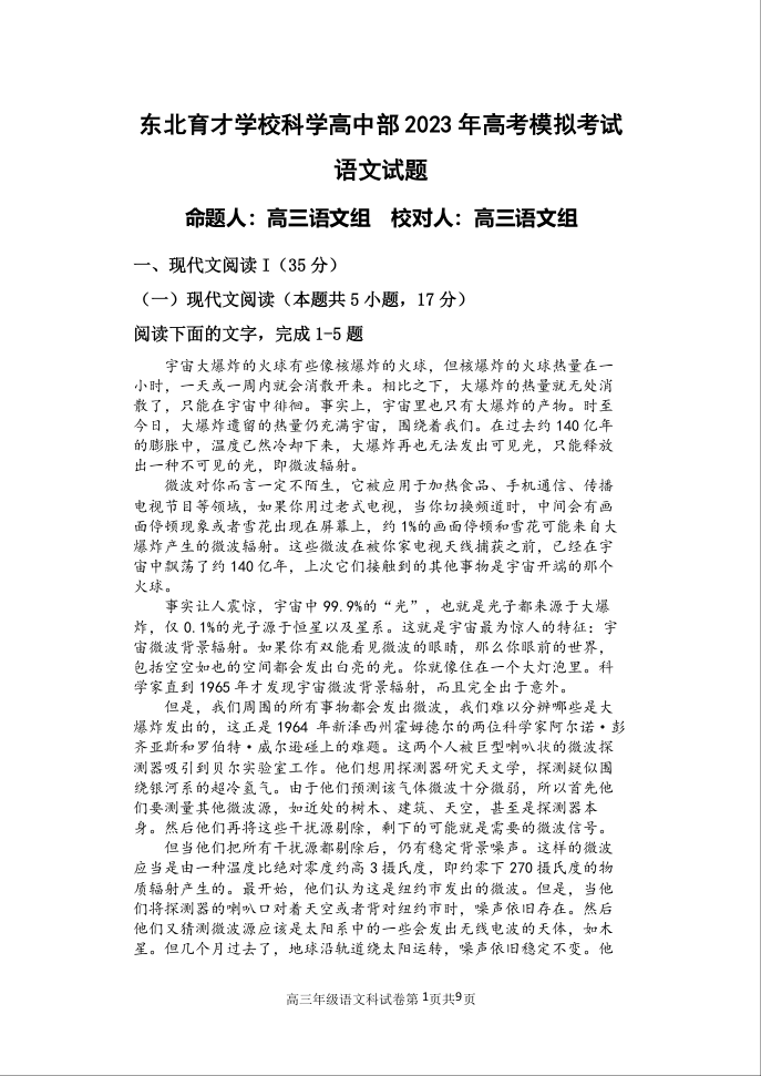 高三语文--辽宁省沈阳市东北育才学校2023届高三下学期最后一次模拟考试