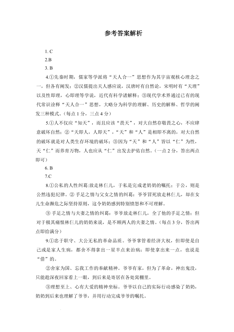 高三语文答案--山东省实验中学2023届高三第一次模拟考试