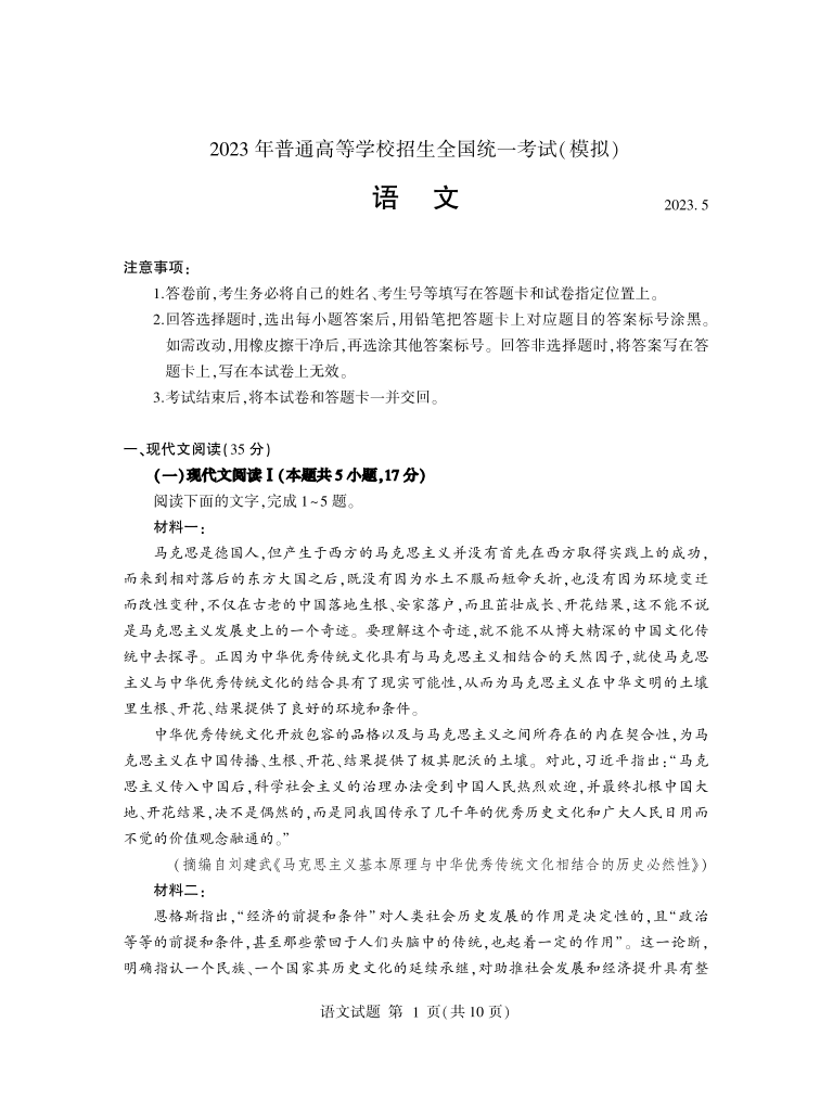 高三语文+答案--山东省临沂市2022-2023学年高三下学期5月二模