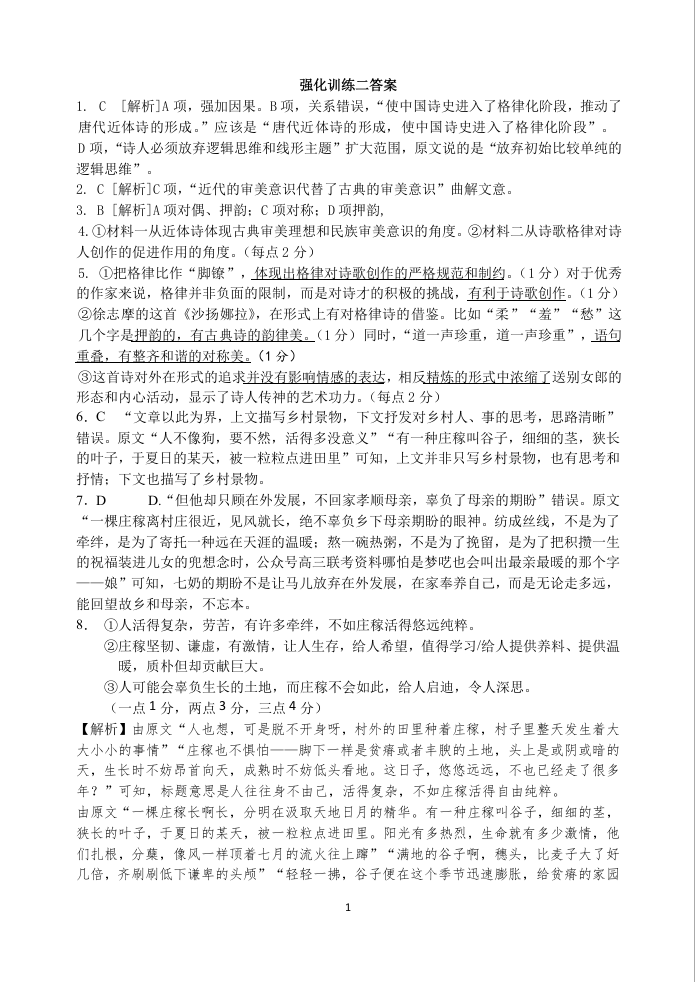 高三语文答案--重庆八中高2023级高三(下)强化巩固训练(二)