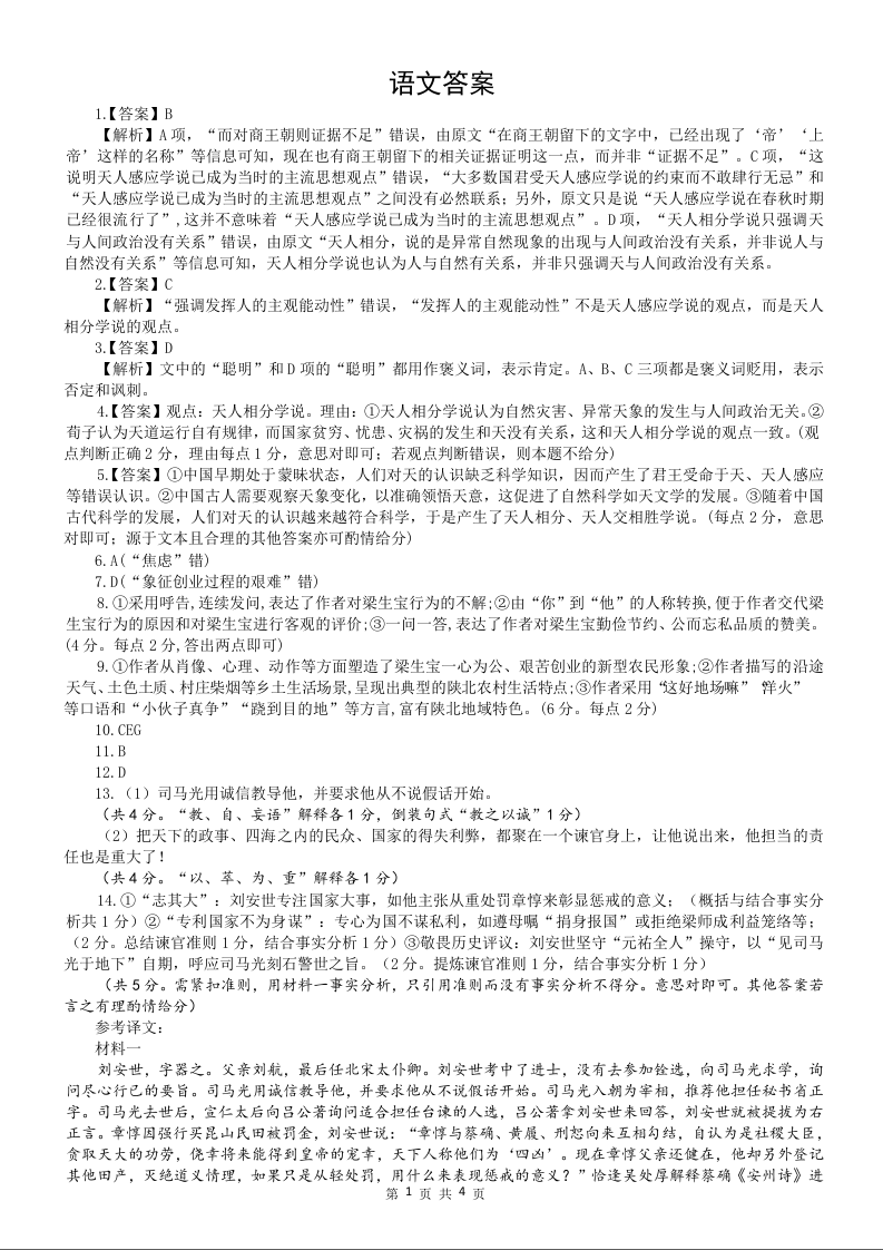 高三语文答案--四川省遂宁市射洪中学2026届高三上学期9月第一次模拟考试