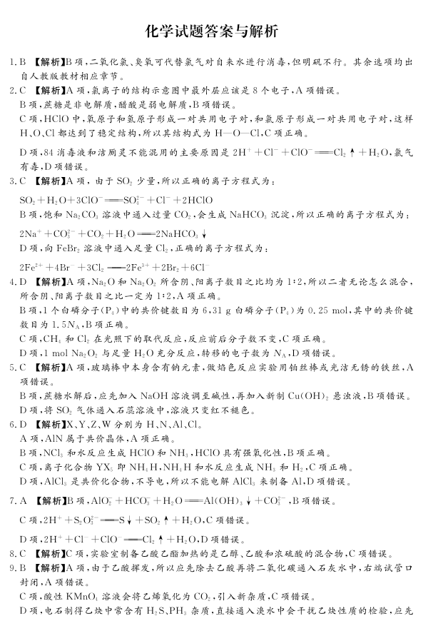 高三化学答案--河北省部分重点中学2023届高三上学期阶段性检测(一)
