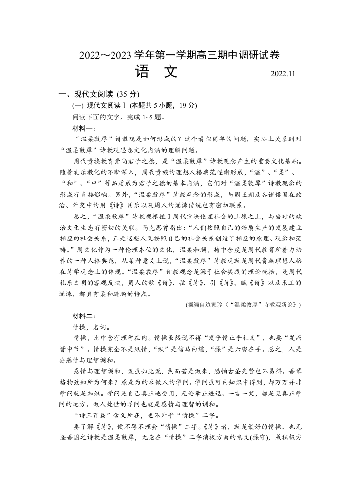 高三语文+答案--江苏省苏州市2022-2023学年高三上学期期中考试