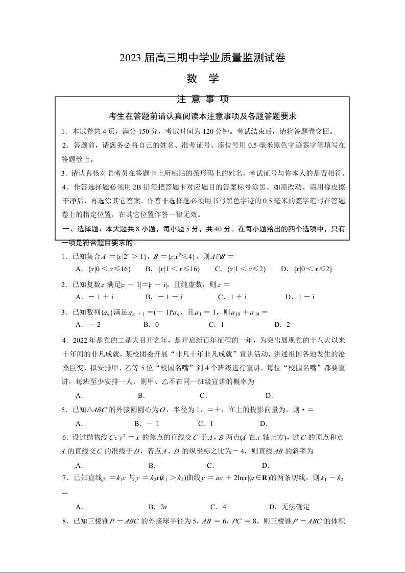 高三数学--江苏省南通市海安市2023届高三上学期期中考试