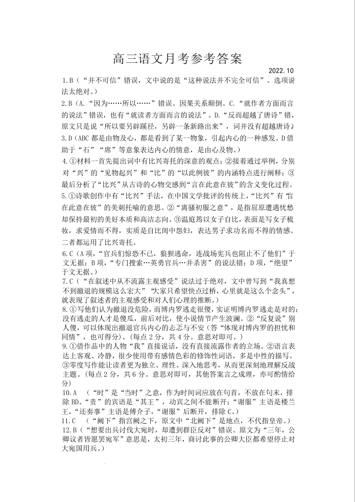 高三语文答案--江苏省扬州中学2023届高三上学期10月月考