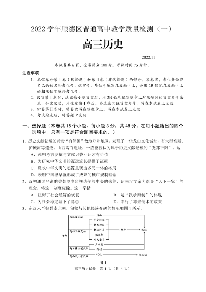 高三历史--广东省佛山市顺德区2023届高三11月教学质量检测(一)