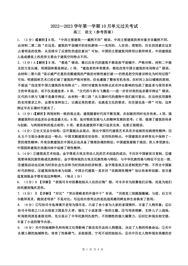 高三语文答案--山东省滕州一中2023届高三10月月考