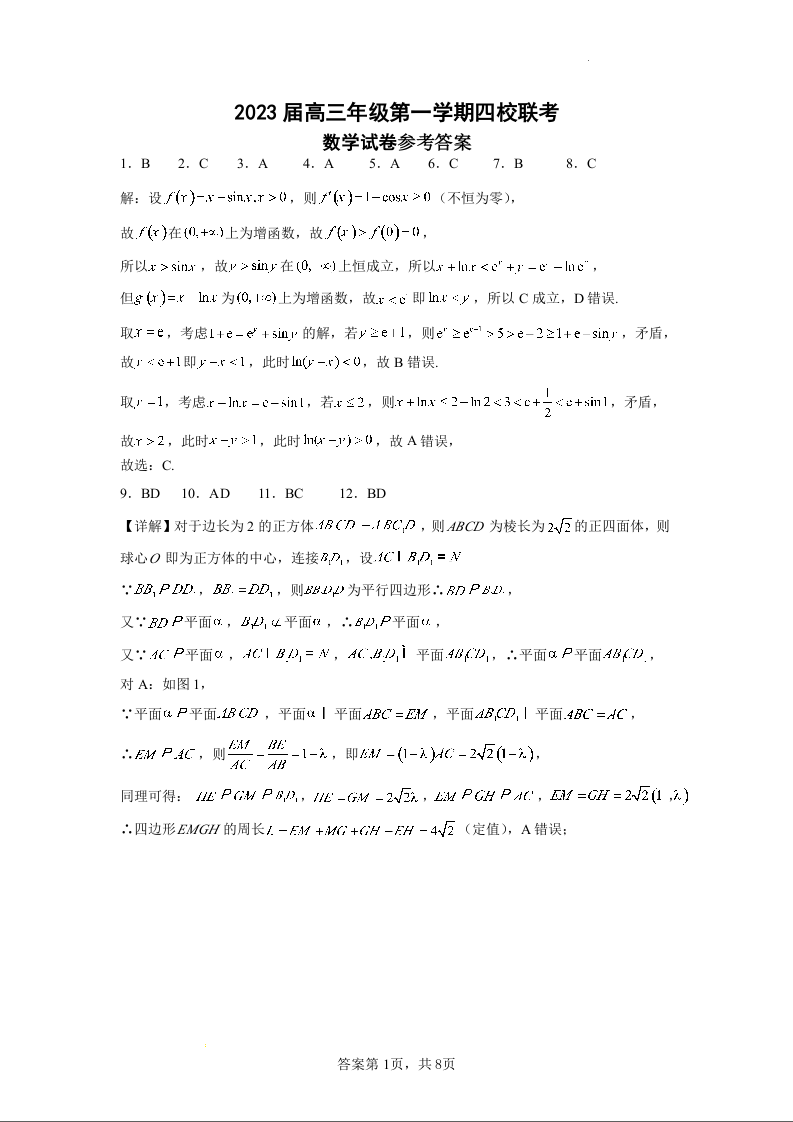 高三数学答案--江苏省盐城市四校2022-2023学年高三上学期联考