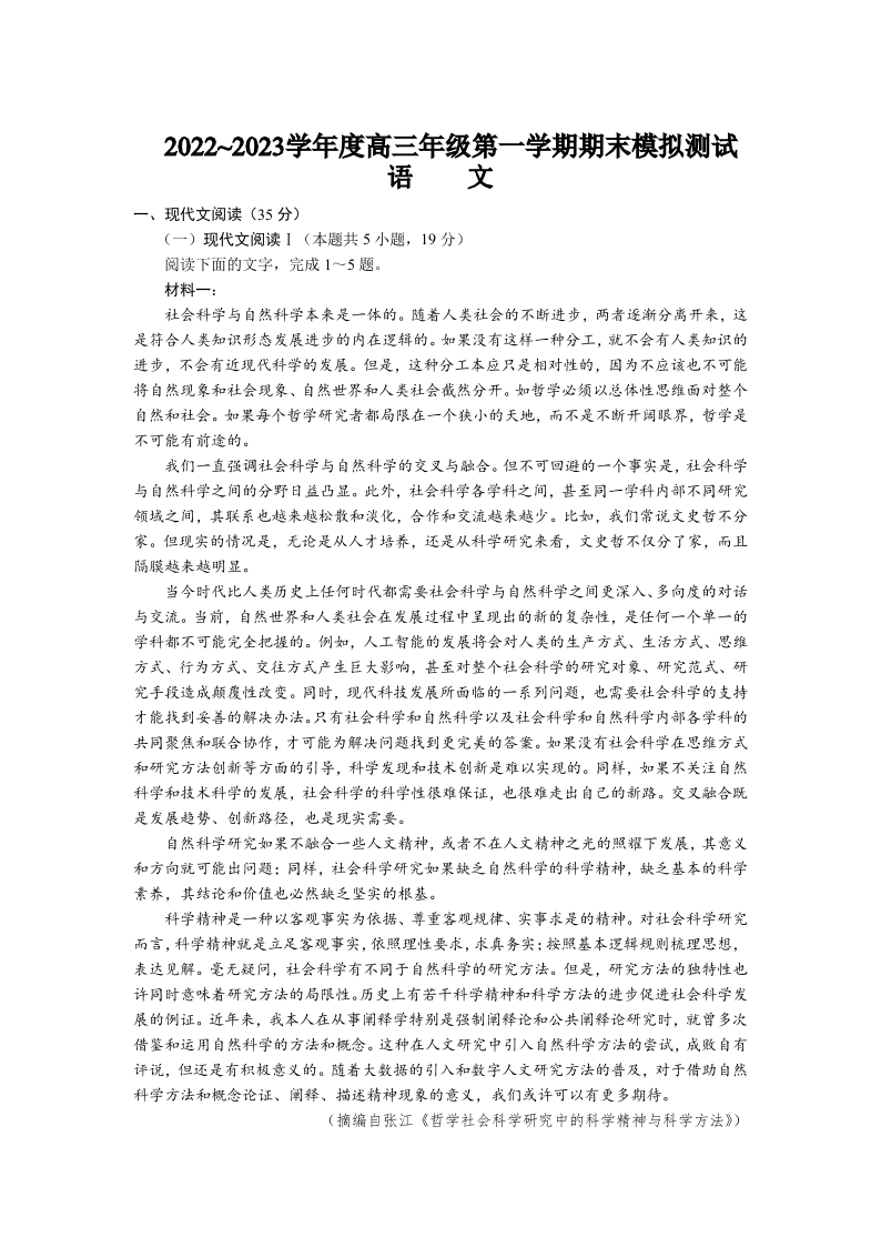 高三语文+答案--江苏省徐州市2022-2023学年高三上学期期末模拟测