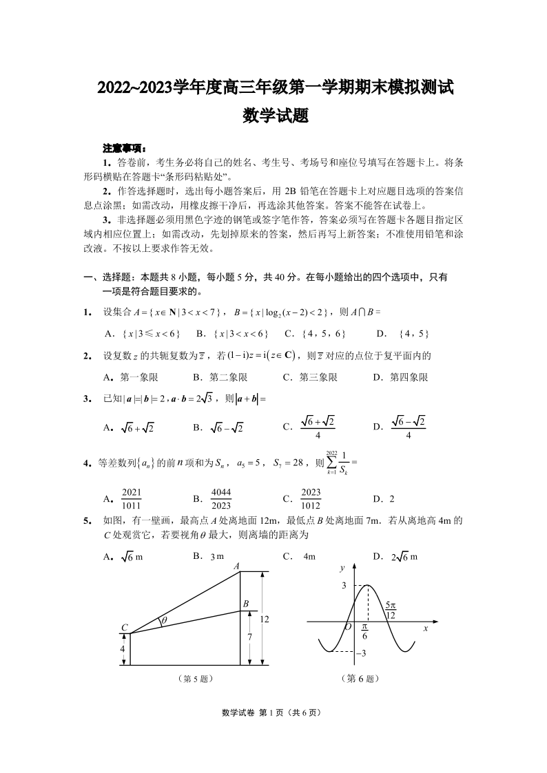 高三数学--江苏省徐州市2022-2023学年高三上学期期末模拟测试
