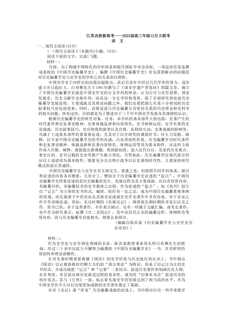 高三语文+答案--江苏省决胜新高考2023届高三上学期12月第四次大联考