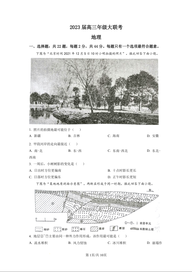 高三地理+答案--江苏省2023届高三上学期大联考