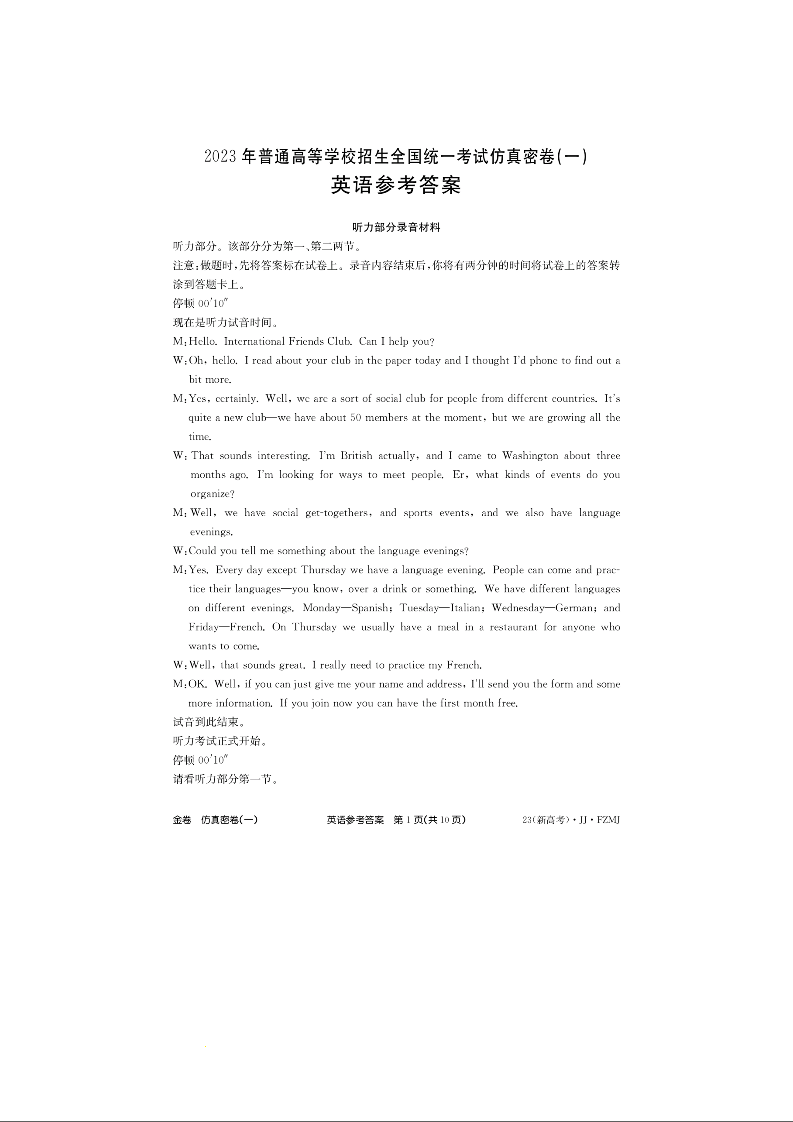 高三英语答案--湖南省普通高中2023年学业水平选择性考试仿真密卷(一)(新教材新高考)
