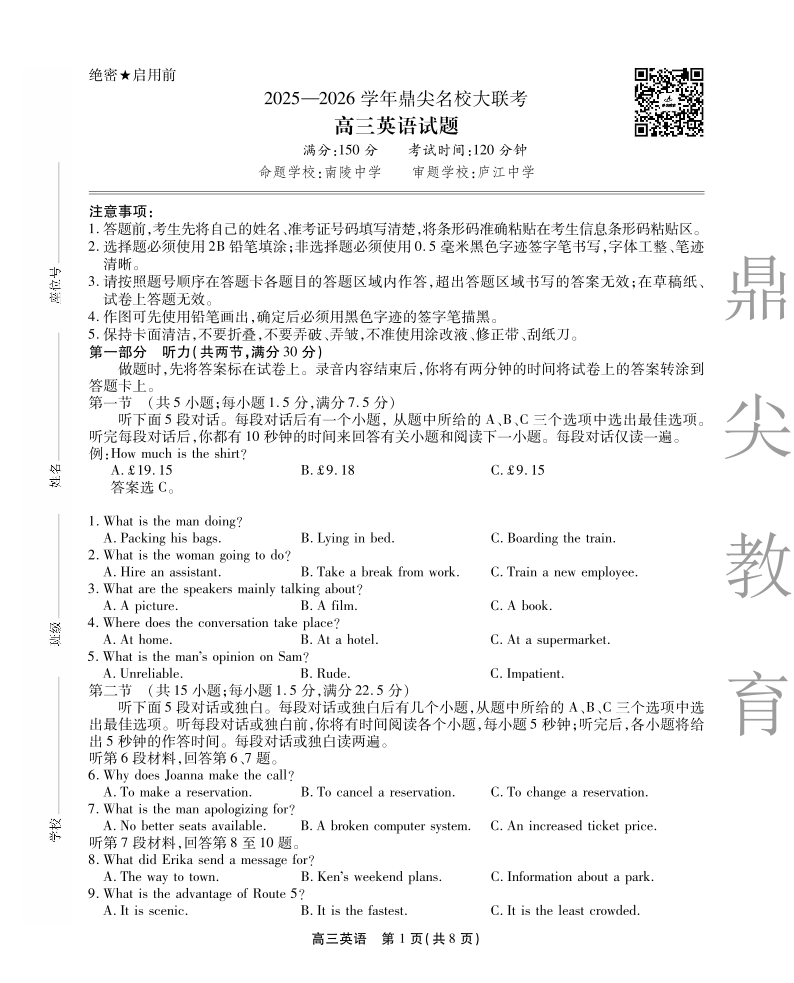 Copyright © 2026 名校考试研题中心资源平台 All rights reserved 鲁ICP备2024123781号-1