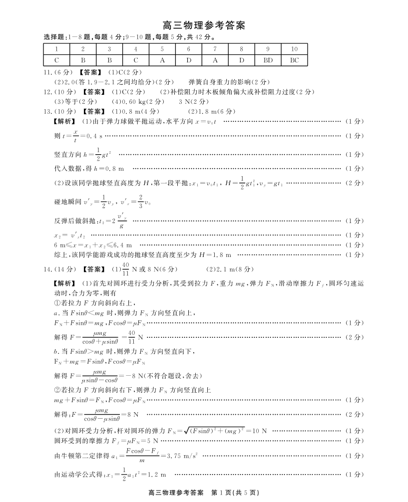 高三物理答案--安徽省鼎尖名校大联考2026届高三上学期10月月考