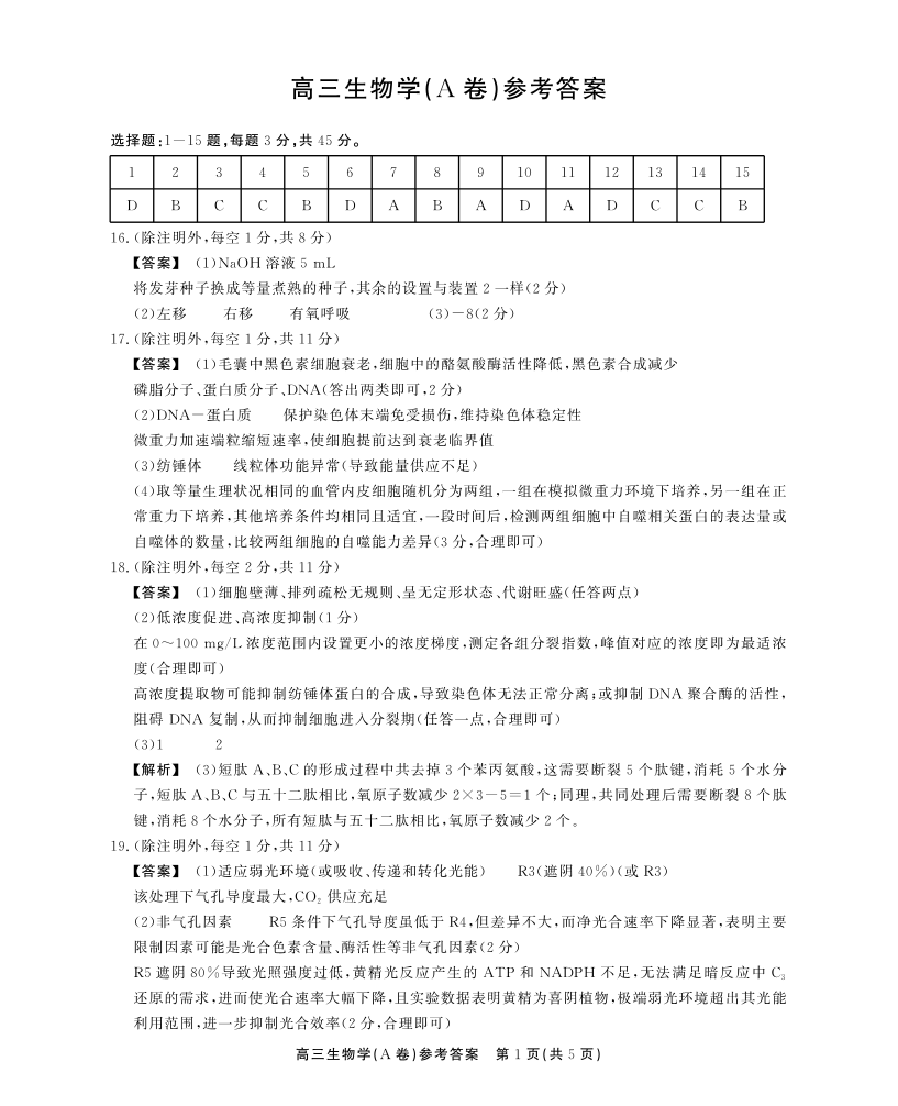 高三生物A答案--安徽省鼎尖名校大联考2026届高三上学期10月月考