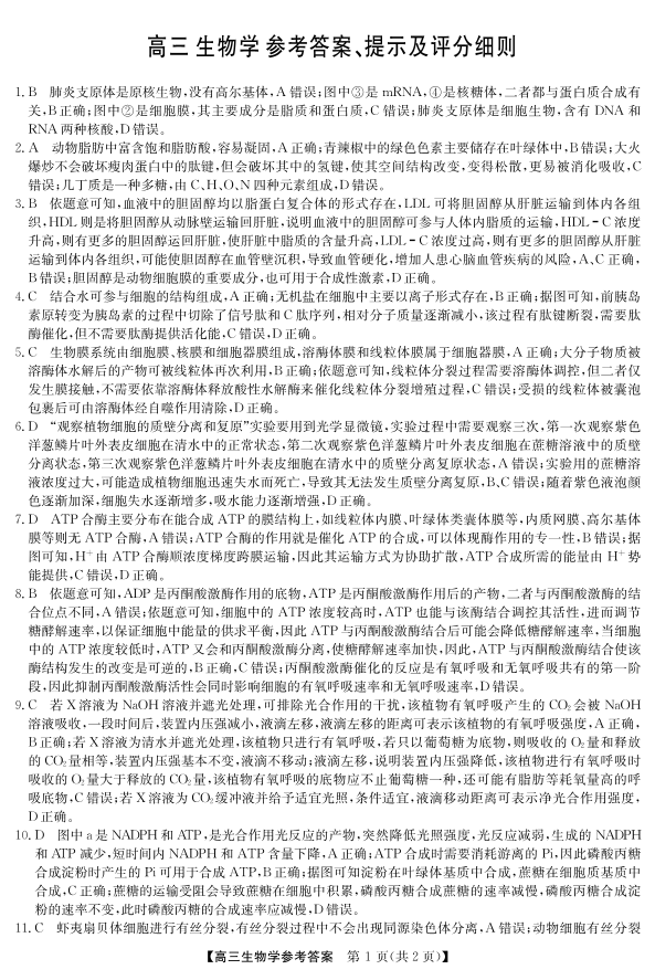 高三生物答案--安徽省江南十校2026届高三第一次综合素质检测