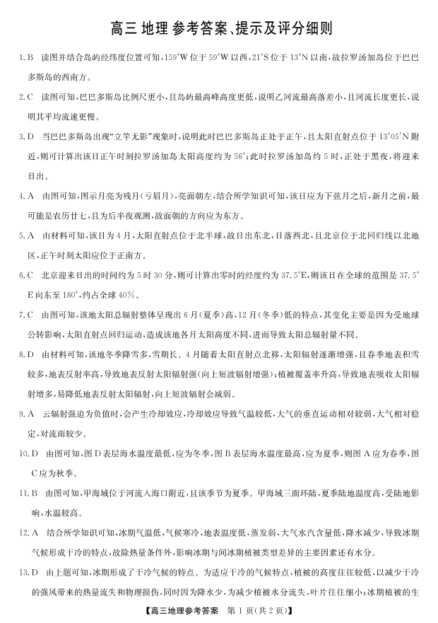 高三地理A答案--安徽省江南十校2026届高三第一次综合素质检测