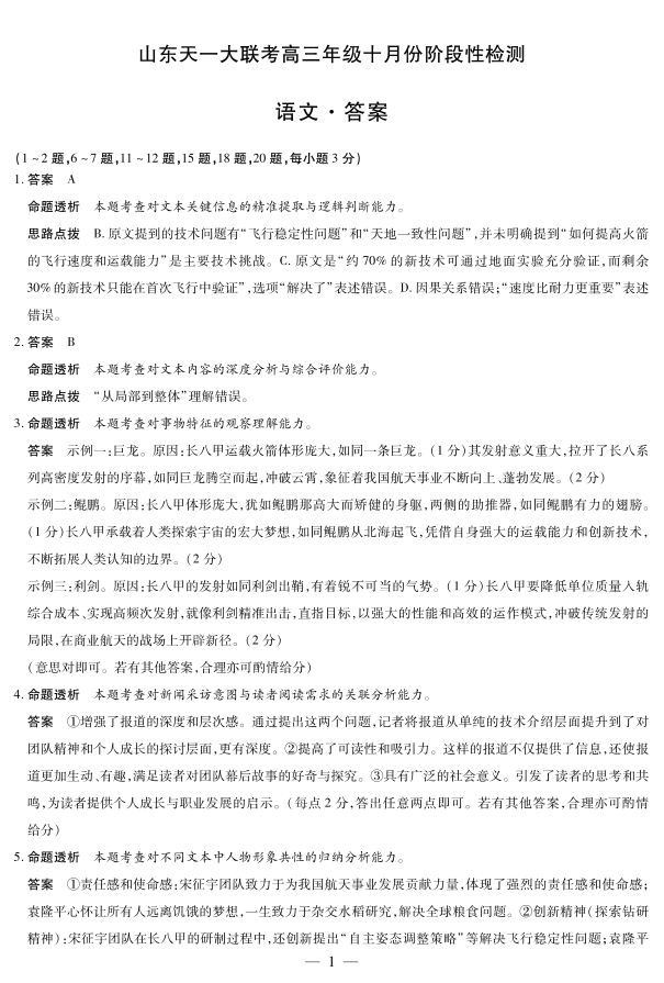 高三语文答案--山东省天一大联考2026届高三年级十月份阶段性检测