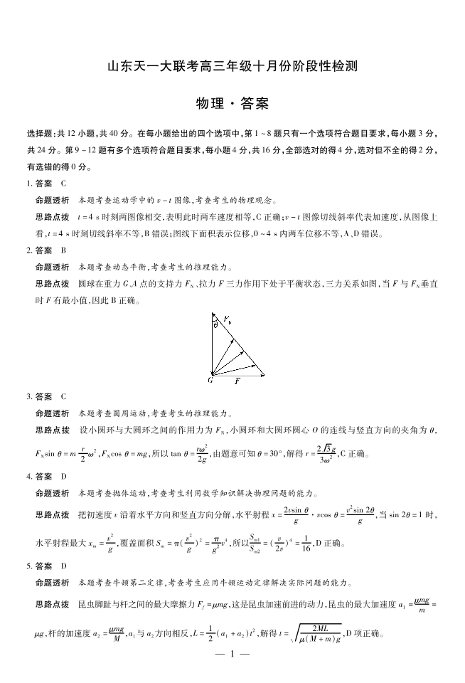 高三物理答案--山东省天一大联考2026届高三年级十月份阶段性检测