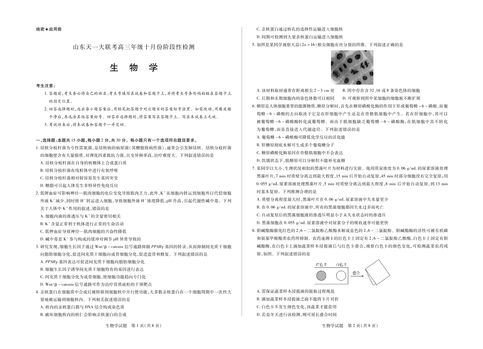 高三生物--山东省天一大联考2026届高三年级十月份阶段性检测
