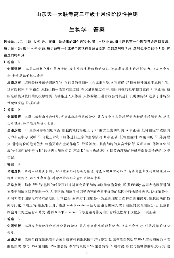 高三生物答案--山东省天一大联考2026届高三年级十月份阶段性检测