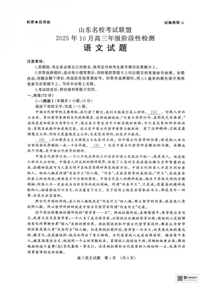 高三语文--山东省名校考试联盟2026届高三上学期10月阶段性检测
