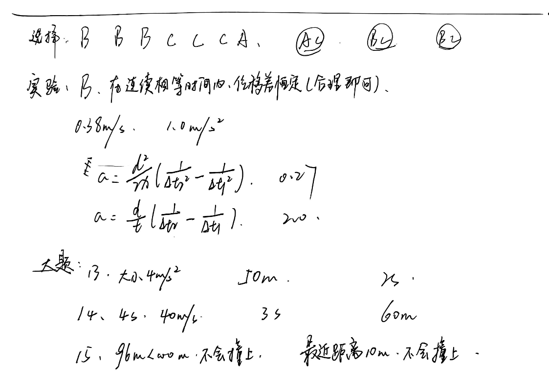 高一物理答案--黑龙江省牡丹江市第二高级中学2025-2026学年高一上学期9月月考试题
