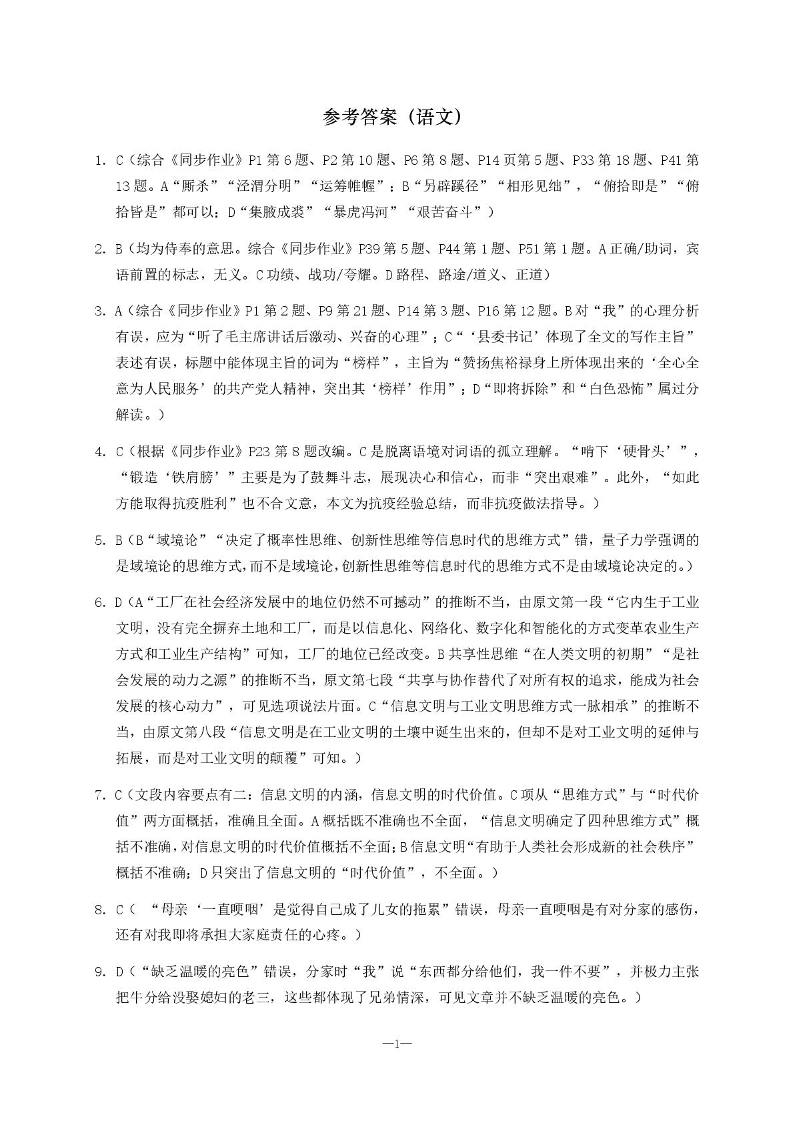 高二语文答案--湖南省长沙市雅礼中学2025-2026学年高二上学期第一次(10月)质量检测