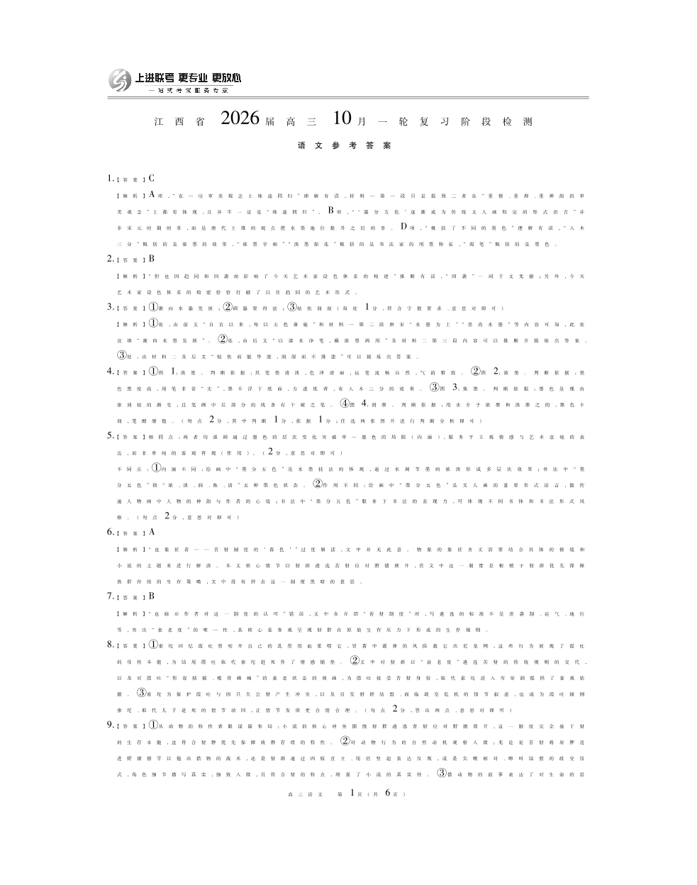 高三语文答案--江西省上进联考2026届高三10月一轮复习阶段检测
